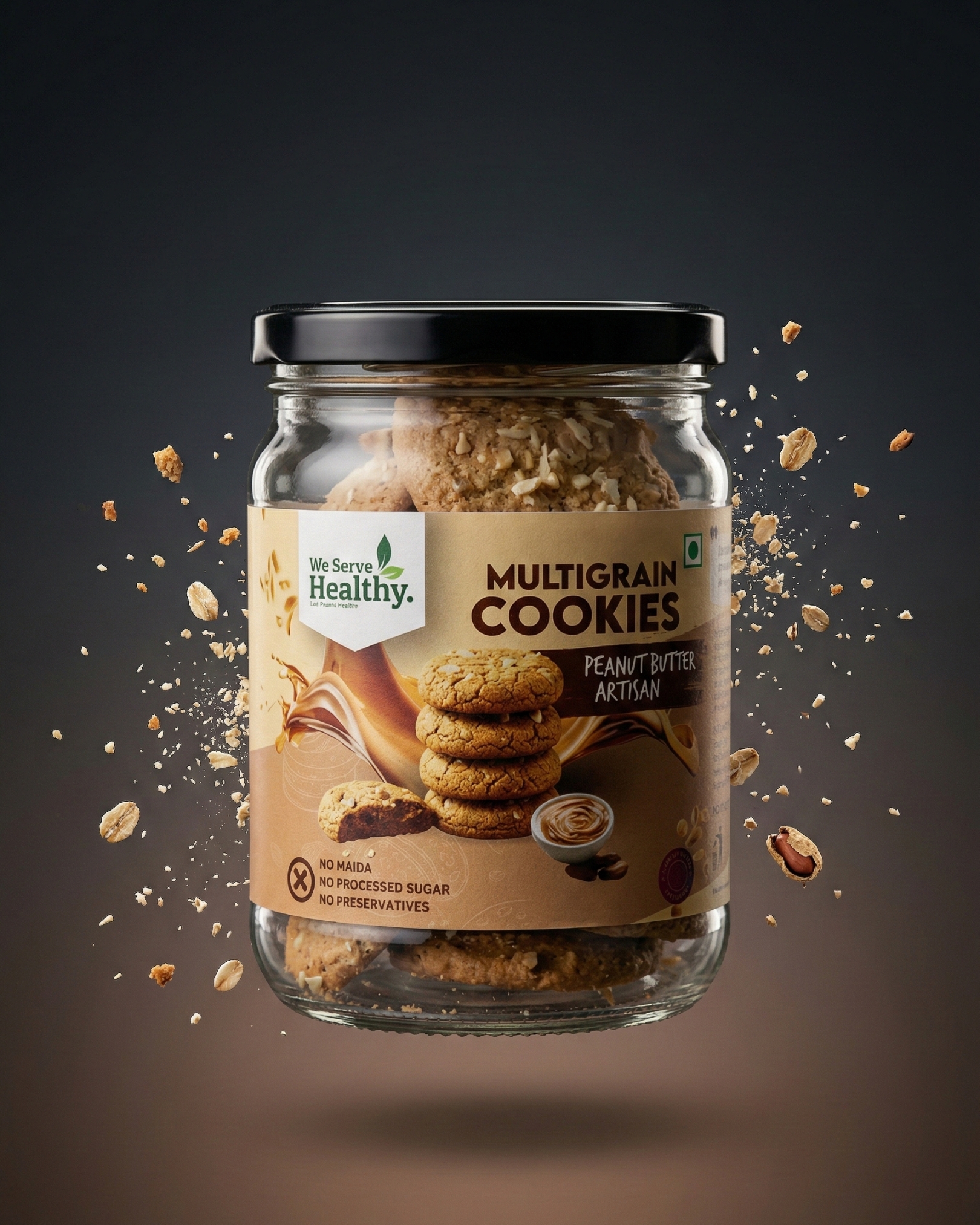 1. A Better-for-You Base: The Multigrain & Oat Flour Foundation We said NO to refined flour (maida). The entire structure of our cookie is built on a custom-milled blend of Multigrain Wheat Flour and Oats Flour. This isn’t just a sprinkle of “healthy” grains; it’s the core of our recipe. Our blend includes the goodness of whole wheat (40%), hearty oats, ragi, and bajari, providing sustained-release energy, vital fiber, and a satisfying, rustic texture.